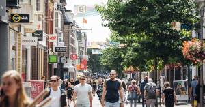 Godenbeelden zie je niet, daar in de Hoofdstraat. Maar wat mij wel opvalt op dit plaatje is de enorme hoeveelheid reclame. Overal oproepen om te kopen en te consumeren. Is dat misschien waar mensen hier nu het geluk van verwachten? Van spullen en shoppen, van geld en goederen?