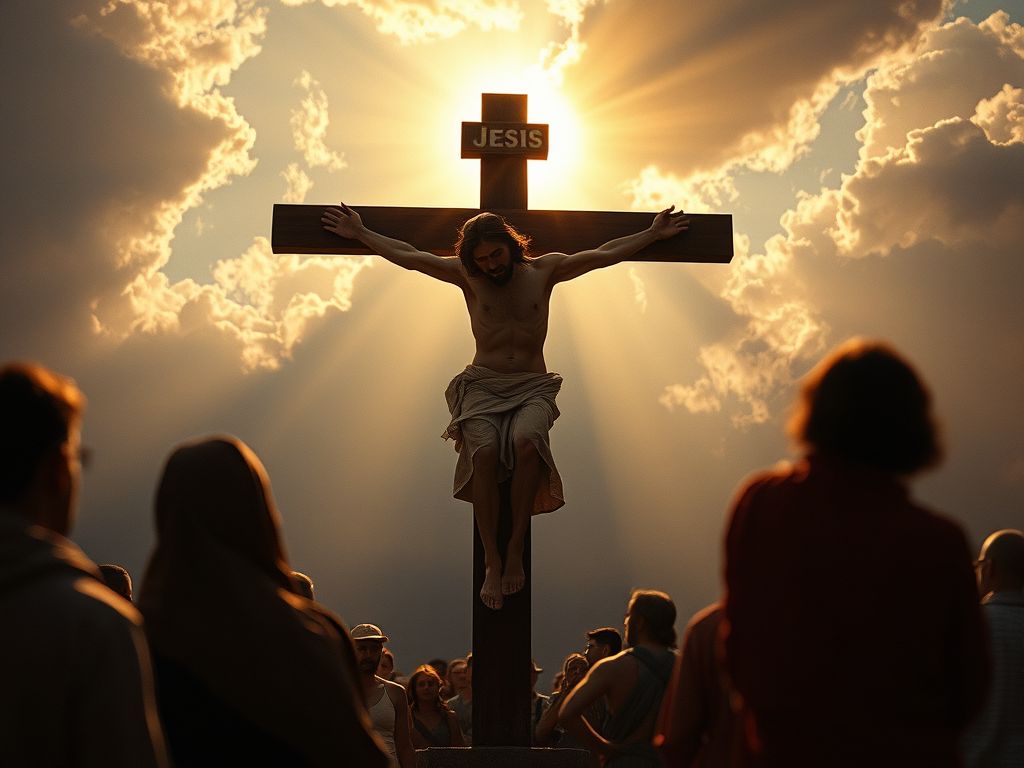 De mensen staan toe te kijken. Daar, net buiten Jeruzalem, op de plek waar gewoonlijk de misdadigers werden geëxecuteerd. Vandaag worden drie mensen gekruisigd. Één van hen heeft een zekere bekendheid. Het is Jezus van Nazareth, de rondtrekkende prediker over wie bijzondere dingen worden verteld, die vorige week nog werd toegejuicht door mensen met palmtakken in hun hand. Je kunt een hele groep van de Joodse leiders vinden op de executieplaats – er is iets bijzonders aan de hand vandaag. Vanmorgen was er ook al onrust bij het paleis van Pilatus. Daarom staan veel mensen toe te kijken nu. Sommigen zijn speciaal de stad uitgekomen, anderen komen toevallig langs en blijven staan.
